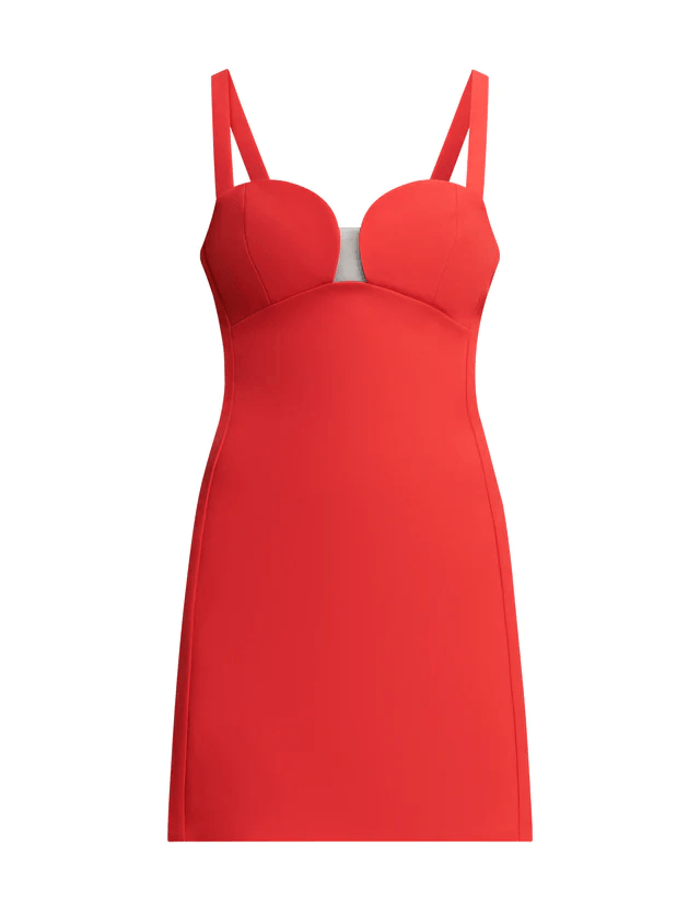 Hermoso vestido confeccionado en crepé silueta fit and flare con tirantes y escote efecto corazón con abertura central, corte princesa y falda en línea A, diseño clásico y femenino.